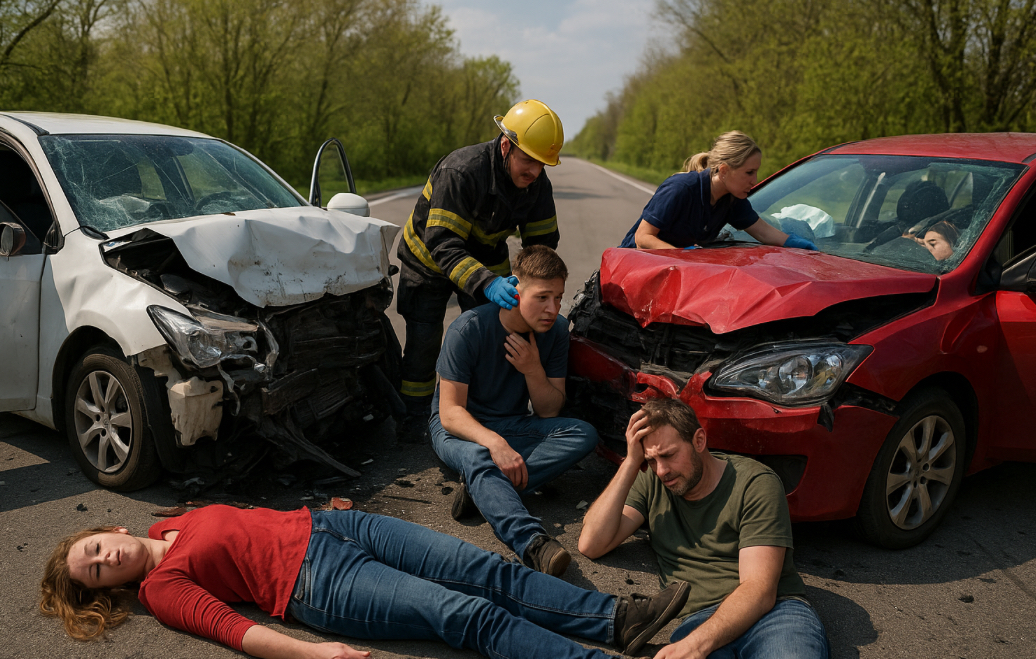 Um grave acidente de viação ocorrido esta tarde provocou pânico e deixou cinco pessoas feridas, após uma colisão violenta entre dois veículos ligeiros. O incidente aconteceu numa estrada bastante movimentada, gerando um grande aparato de meios de socorro e causando fortes constrangimentos no trânsito.